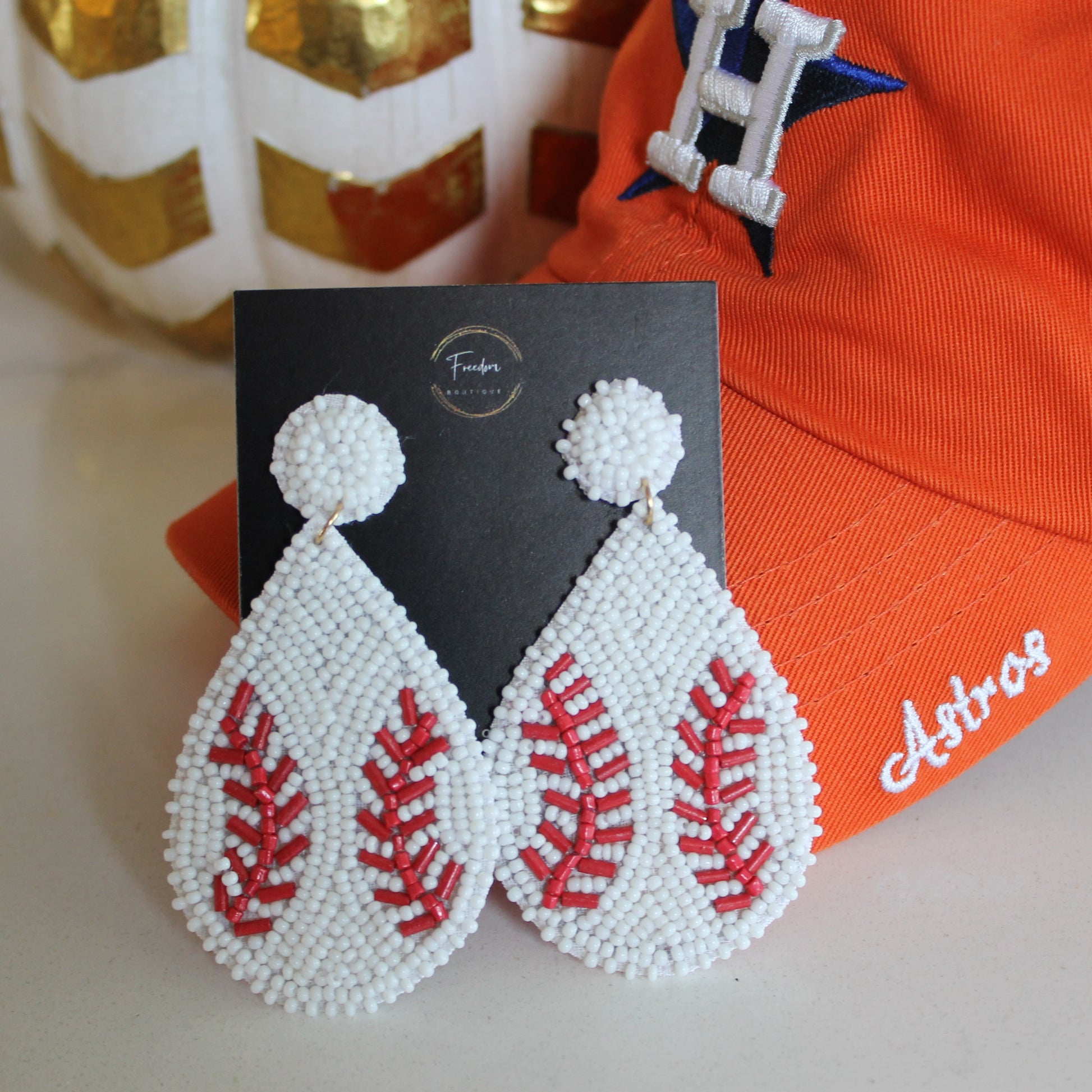 Take me out to the ballgame! Add these cute beaded earrings to your game day outfit! Lightweight, comfortable, and easy to wear. Felt covered on the back. 2.5 inches long by 1.6 inches wide.