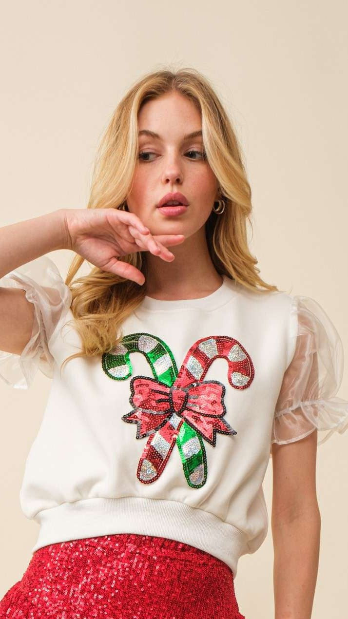 Candy Cane Sheer Sleeve Top
