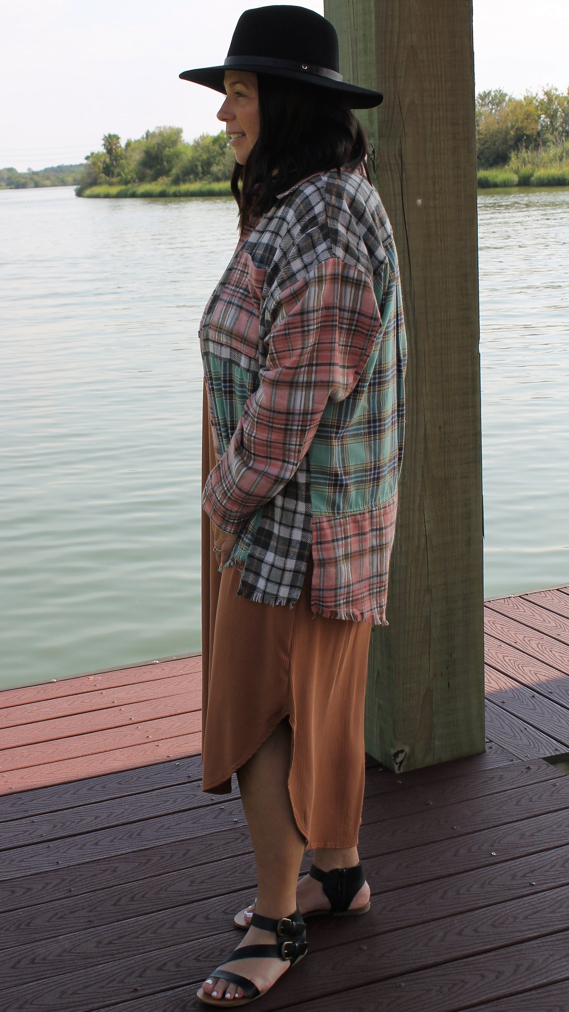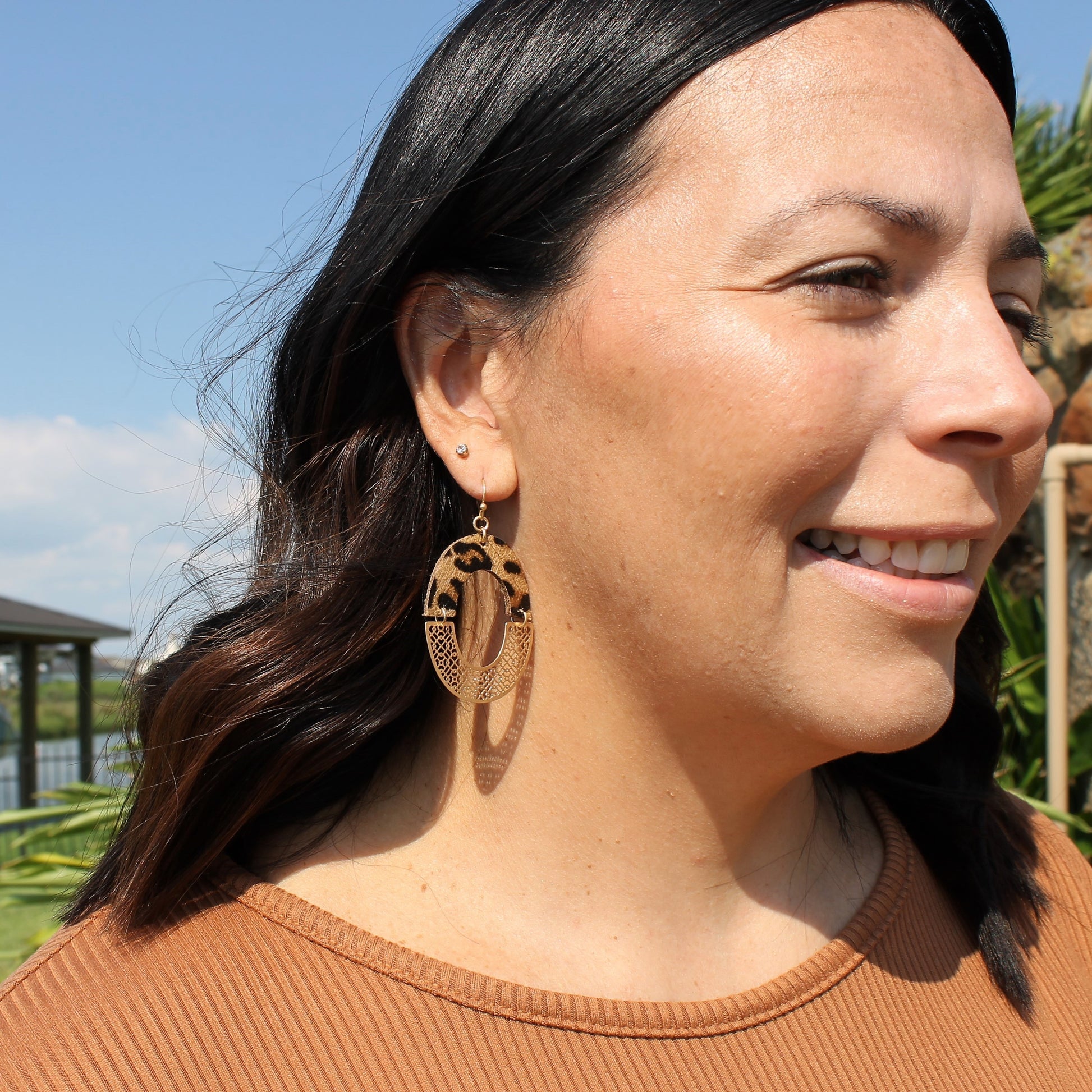 Shown paired with our Mixed Plaid Flannel Top and Mixed Media Leopard Earrings.