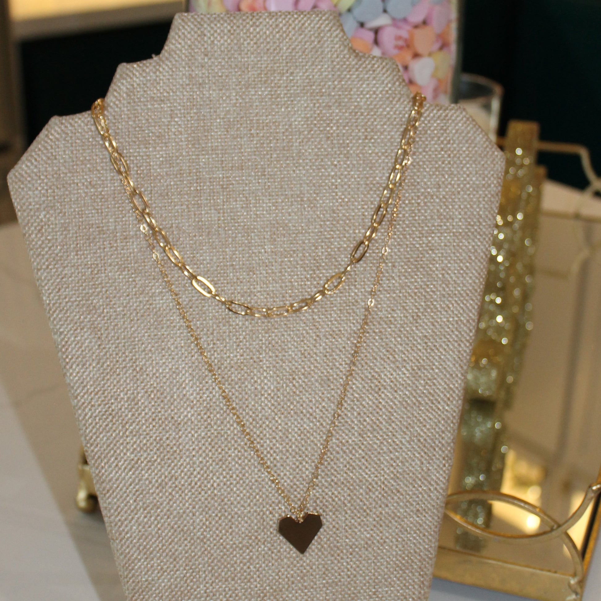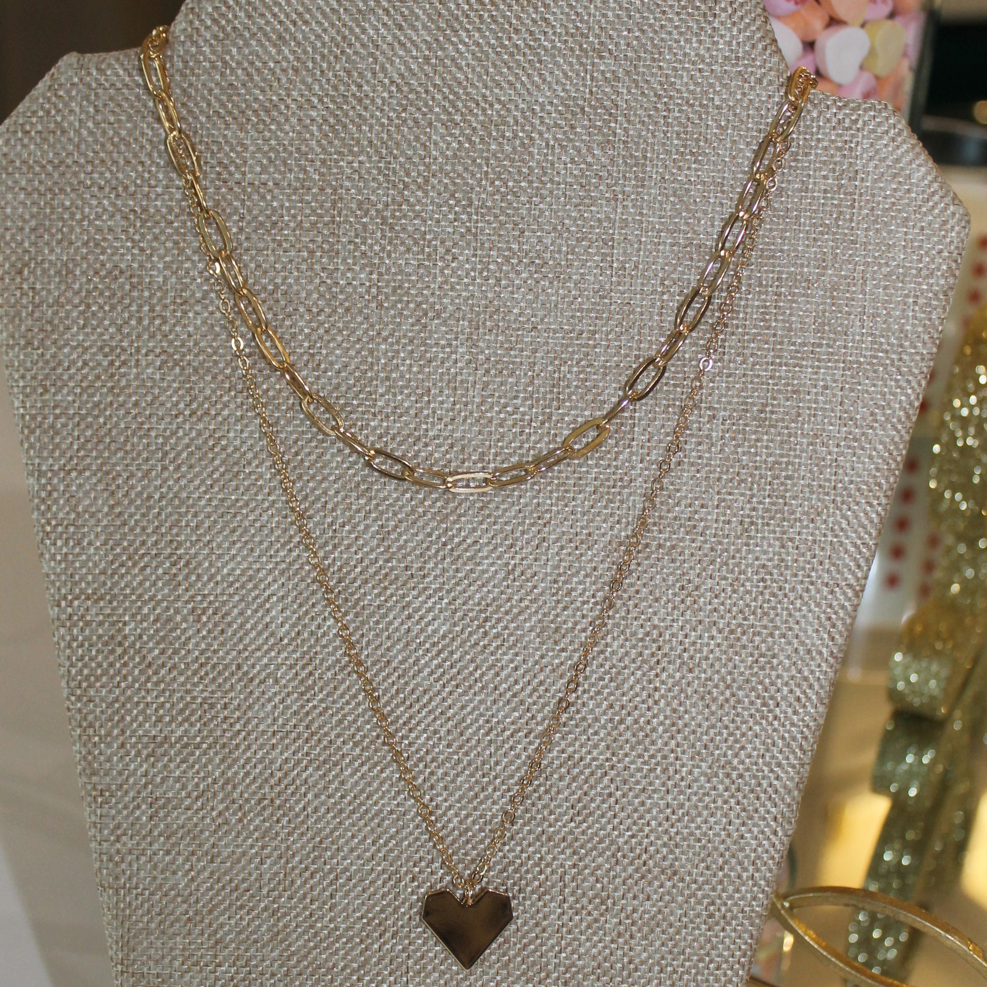 Beautiful double layered necklace with heart charm. Shorter chain is 7" and longer chain is 10".