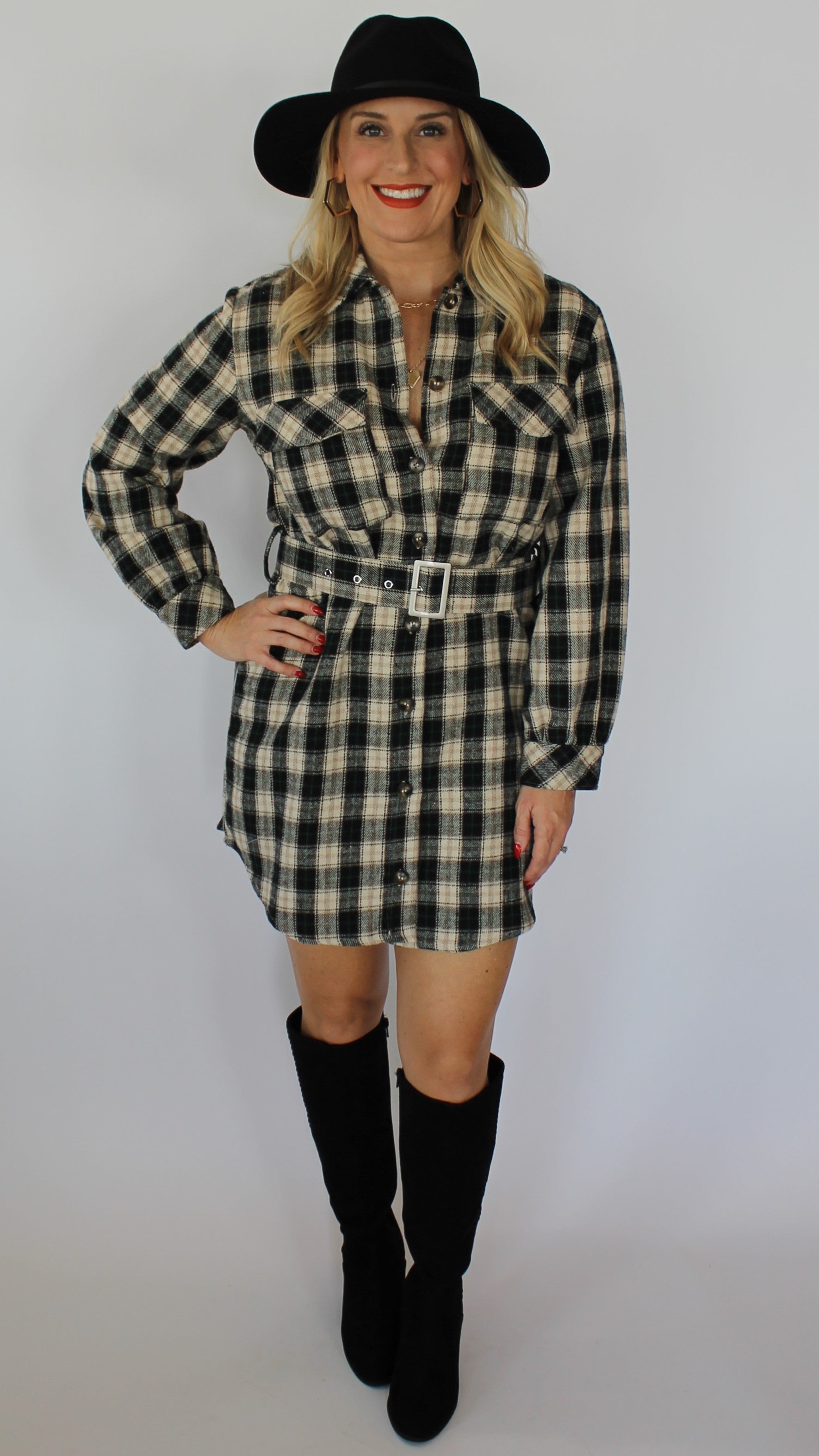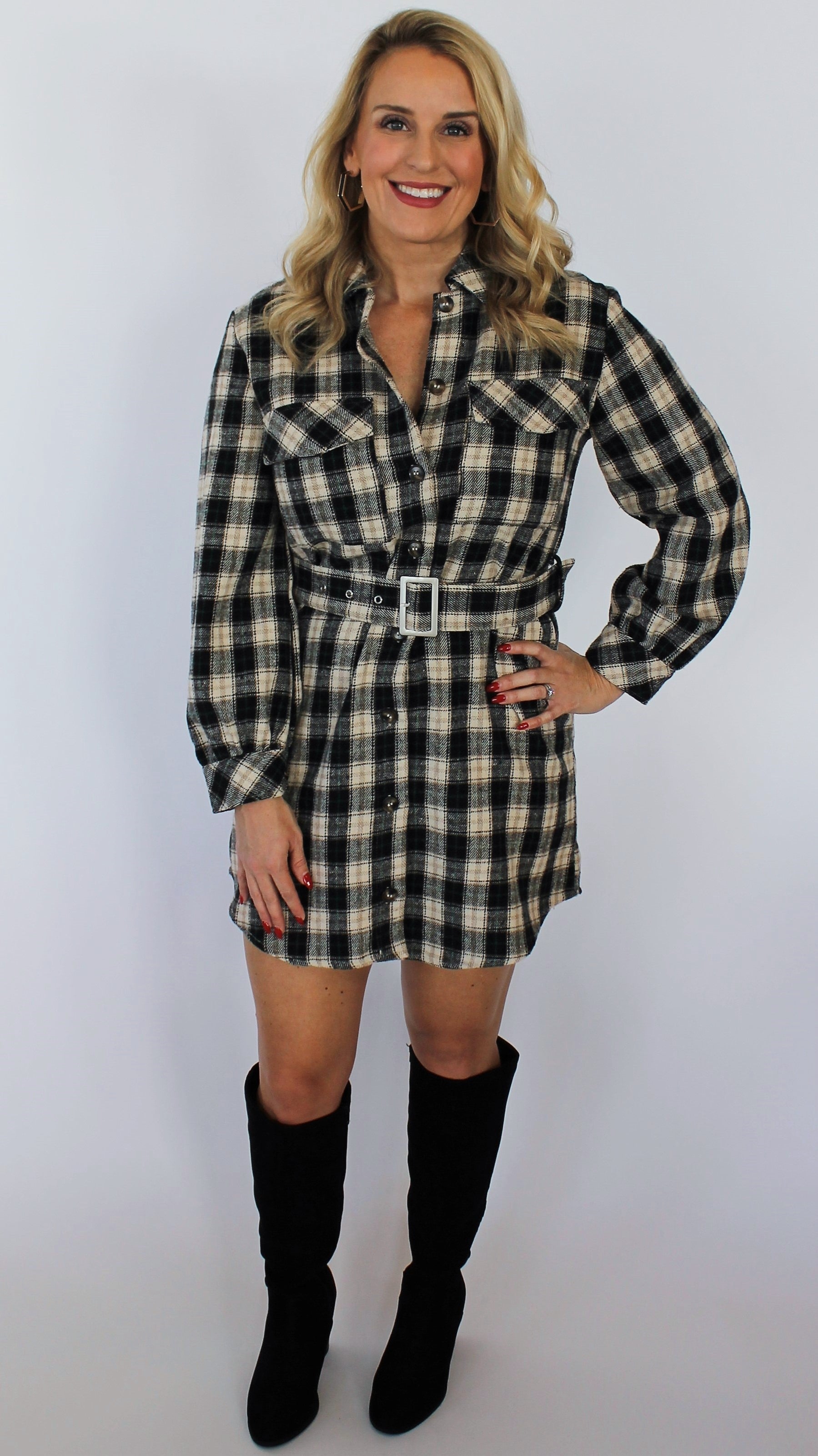 I am loving this plaid dress! Button down, belted, flannel plaid dress that is perfect for fall.