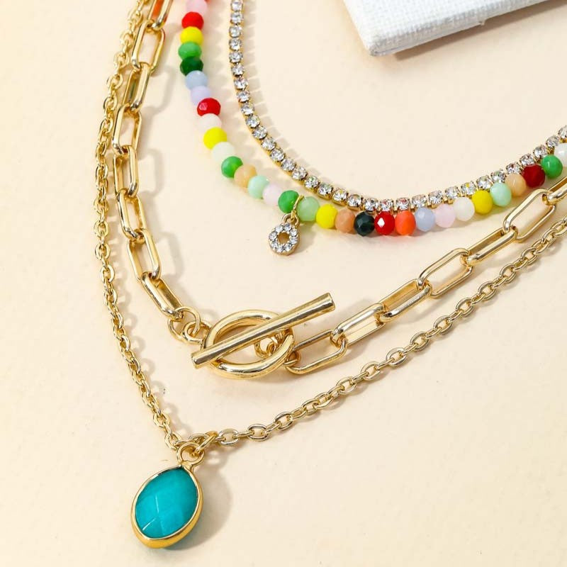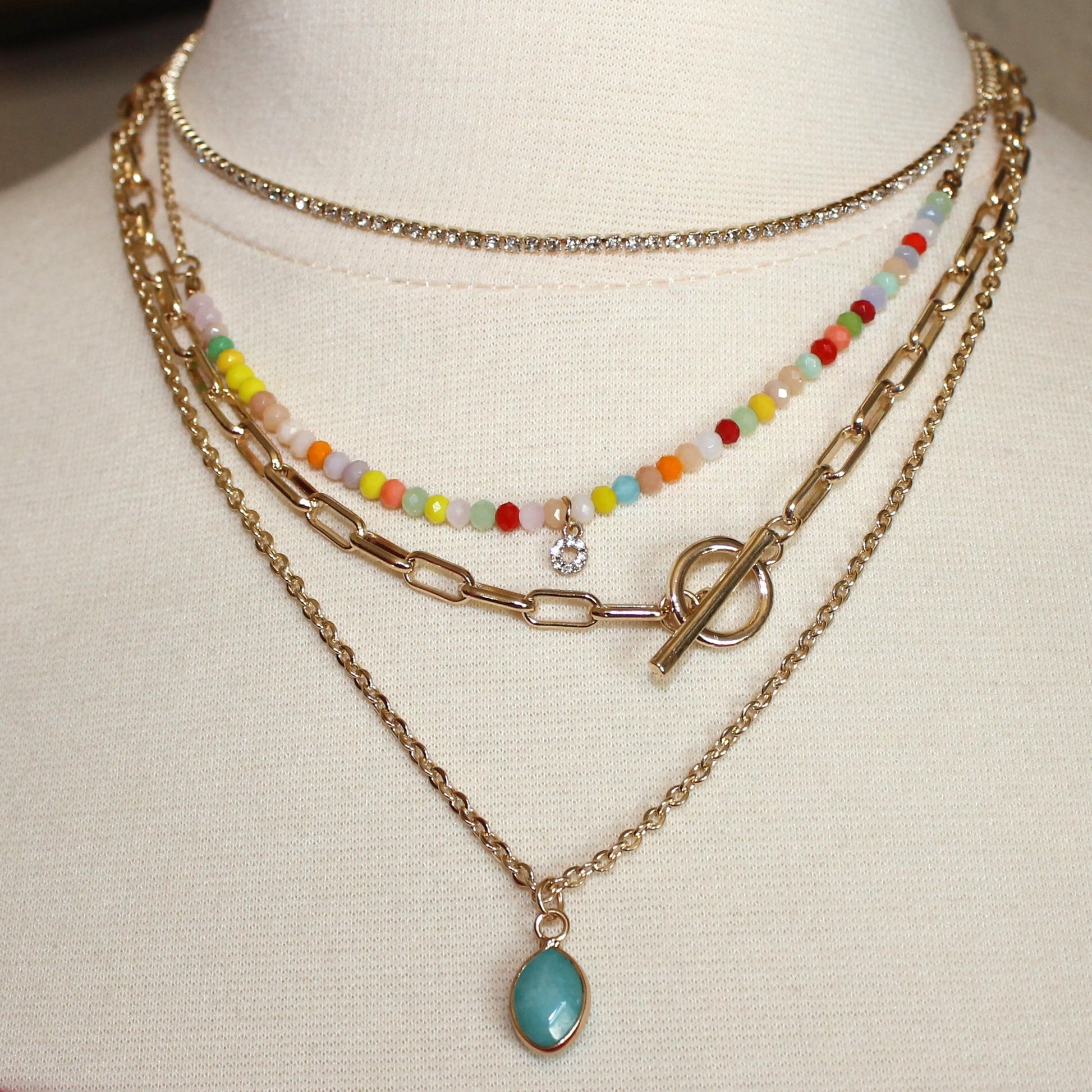 A gorgeous and unique layered necklace made into a bead chain oval stone pendant layered necklace design.