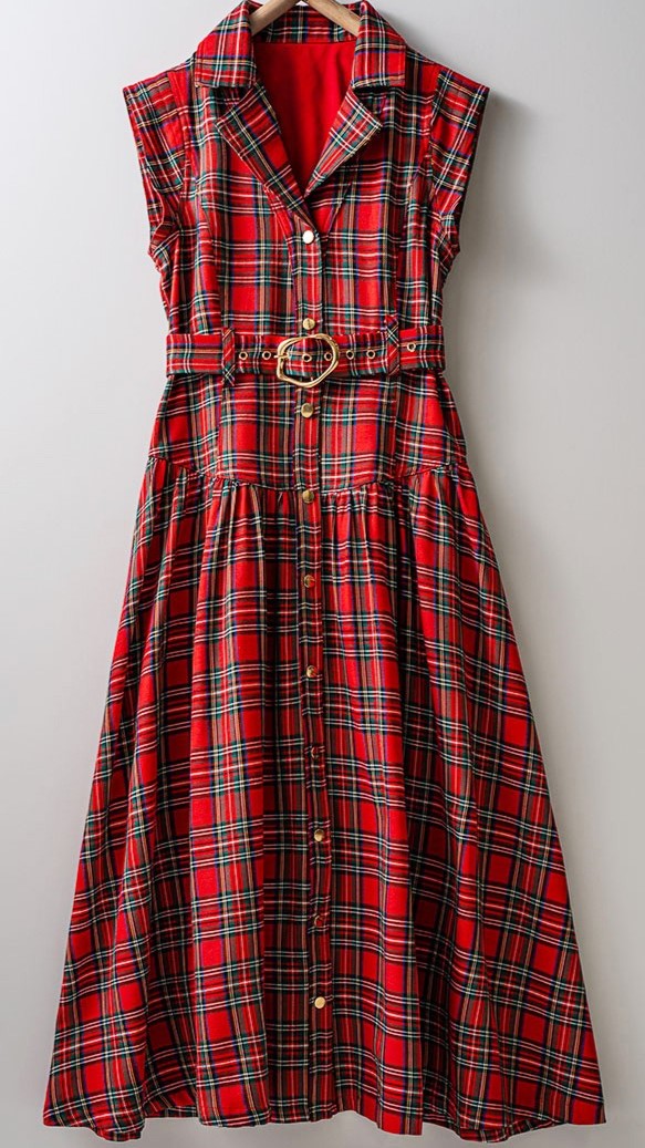 Get ready to take on the day or night in this sleeveless plaid belted dress. With a collared neckline and button-up design, this dress is both stylish and versatile. The included belt cinches at the waist, giving you a flattering silhouette. Perfect for any occasion, this dress is a must-have for your wardrobe.