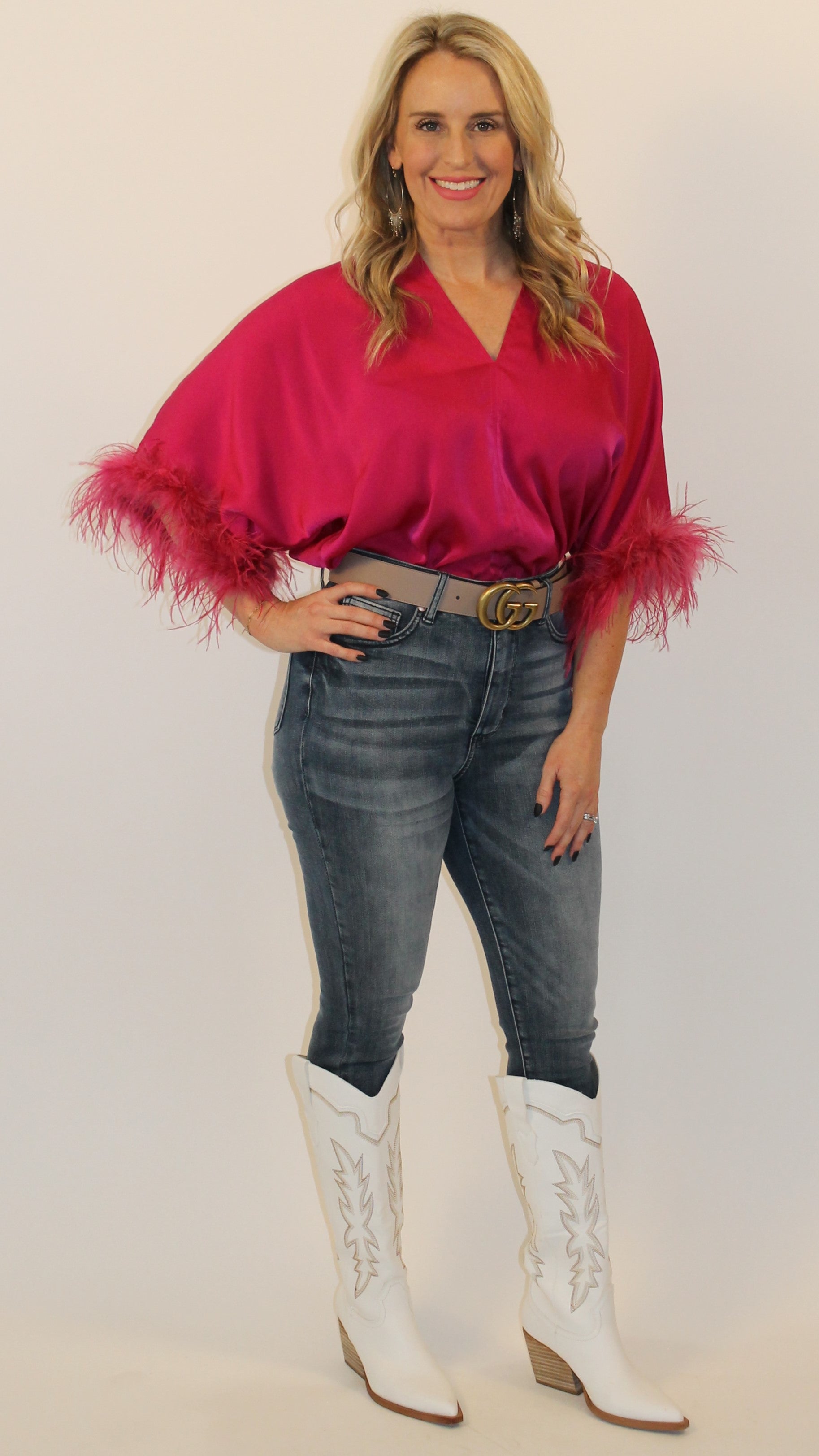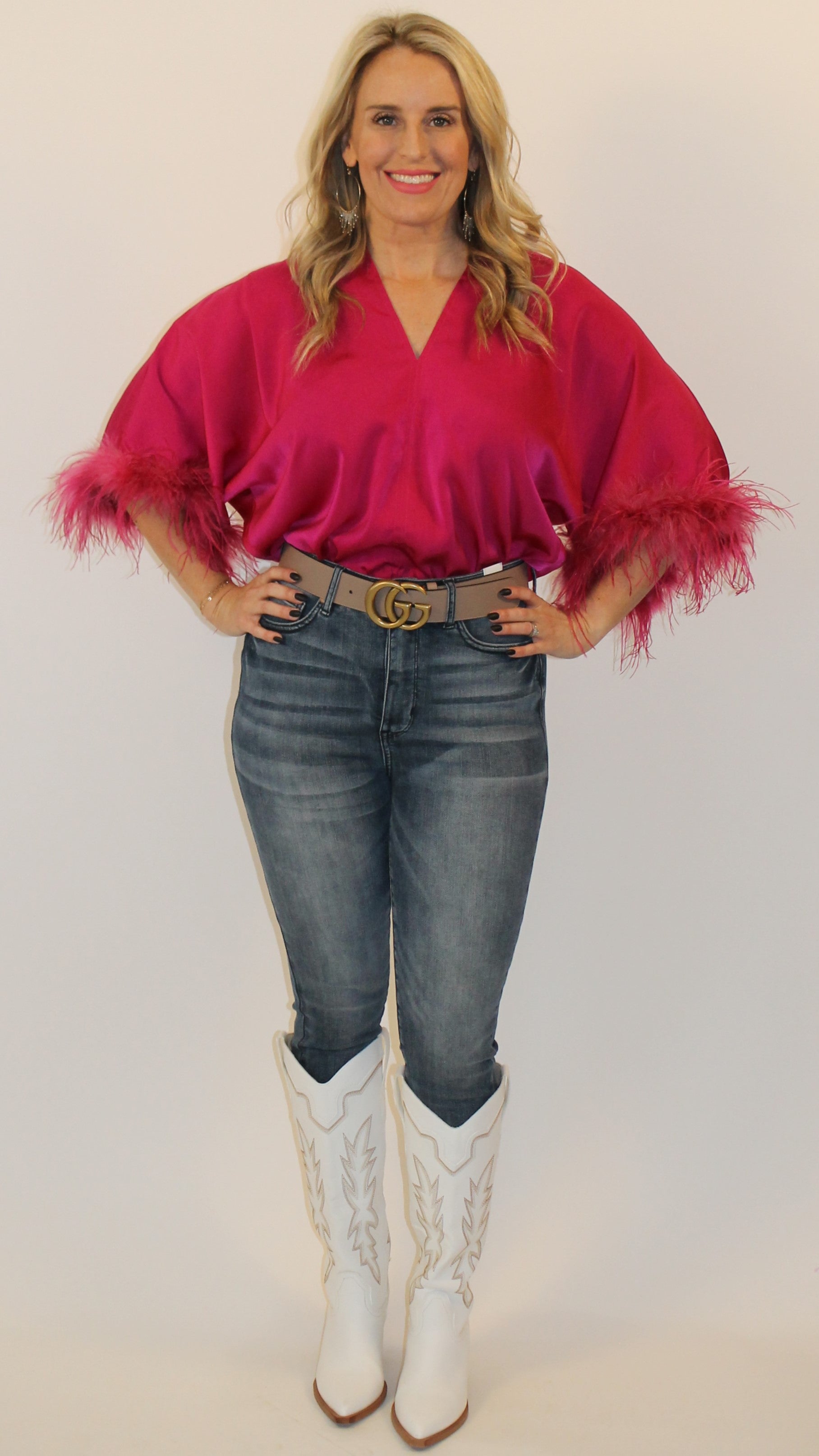 Shown paired with our faux leather skirt, judy blue tummy control skinny jeans, and these boots are made for walkin' western boots.